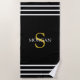 Toalha De Praia Dourado Monograma/Nome Branco Stripes Brancas, Pre
