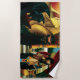 Rainha egípcia com um dragão vermelho no ombro. A rainha está segurando uma órbita de um Universo. Um leão negro com asas está em montanhas com um esfinge atrás.
