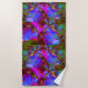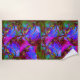 Uma toalha de praia com tema divertida e divertida. Com rosa impressionante, verdes e amarelos.
