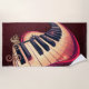 Elegance in motion, the curved piano. The keyboard curves and winds elegantly, creating an abstract and vibrant composition. The keys feature a soft gradient, ranging from light peach on the upper edge to pure white on the lower edge. Between the light keys are classic black keys, enhancing the contrast and emphasizing the musical theme. The interplay of the warm colors, the curved shape, and the ornate decorations creates a harmonious, artistic overall appearance that is both musically inspired and visually appealing.