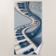 Elegance in piano keys and blossoms. The keys are in classic black and white and curve elegantly, twisting and intertwining in an artful manner to create a dynamic and visually appealing composition. These curved lines add vibrant movement and a touch of sophistication to the image. A bright, glossy bluish element runs alongside the keys, parallel to the keyboard. This element adds depth and dimension to the design, providing a modern contrast to the classic keys.