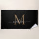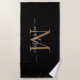 Toalha De Praia Elegante Black Dourado Monograma Feminine Script G