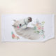 Toalha de praia com uma ilustração mágica de uma bela cabeça de cavalo branca. Cercado por pequenas flores cor-de-rosa giras. Boho elegante para amantes de cavalos.