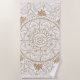 Toalha De Praia Elegante Dourado Olho Sol Lua Mandala Branco