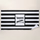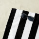 Esta toalha monográfica de praia parece elegante e na moda com listras brancas e pretas.