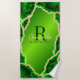 Esta toalha esmeralda verde de praia apresenta um design único que imita as joias agate e emerald decoradas com falsa brilho dourado. Os modelos facilitam a digitação dos nomes Primeiro e Família e de uma carta inicial.
