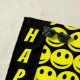 Feliz Engraçado Rostos Sorrindo Emoji Patterno Único Black e Yellow Beach Towel for Happy Summer Times com texto personalizado Happy Vibes, você pode mudar o texto e adicionar seu nome :-)