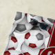 Esta toalha de praia temática de futebol para raparigas ou rapazes apresenta um padrão aleatório, em 3D, de esferas de futebol de dimensão variada que se virou de qualquer forma num fundo branco personalizável - os painéis tipicamente negros em cada bola de futebol foram recoloridos maron e cinzas - personalizam-se com o nome do atleta e o número de camisa - por katz_d_zynes