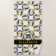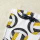 A toalha temática de praia de vôlei desta menina apresenta um padrão de pequenas bolas de voleibol preto, dourado e branco estilizadas organizadas em um padrão espelhado em um padrão branco personalizável - personalize com seu nome e número de camisa - por katz_d_zynes