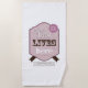 Toalha de praia cristã com palavras de tipografia caligráfica elegante: 'O amor vive aqui'. Inspirado na escritura bíblica de Romanos 8:11. Em um belo estilo vintage rosa. Pode ficar em pé sozinha, mas também faz parte de uma coleção de banheiro cristã. Por favor, visite nossa loja para encontrar produtos correspondentes.