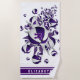 Esta divertida toalha de praia, tema de basquete, apresenta uma "explosão" de diferentes tamanhos, bolas de basquete roxas e brancas e formas de estrelas roxas e cinzas em fundo branco - um padrão de pequenas cobrir brancas, a estrela roxa - personalizam-se com o monograma do atleta no maior basquete e nome em faixas de varSIDADE roxas verticalmente orientadas - por katz_d_zynes