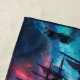 Nebulosas Coloridas no céu são um pano de fundo bonito para esta nave espacial Pirata que aterrissou em outro planeta com muitas luas Arte AI por minx267