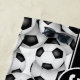 Esta equipe de futebol colorido a toalha de praia para rapazes ou raparigas apresenta um padrão aleatório de bolas de futebol preto e branco de dimensão variada que se virou de qualquer forma num fundo branco personalizável - personalize com o nome do atleta e o número de camisa - por katz_d_zynes