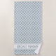 Toalha de praia personalizada com o padrão clássico de círculos geométricos Juniper Green e White e o modelo moderno mínimo de tipografia do nome do barco. Patio e decor de pavimento para Hamptons Style fora das áreas de assentos ou dos elegantes resorts de praia. Esta toalha de praia também é uma ideia de presente de excelente para ela e para ele, marinheiros e barqueiros. Toalhas de praia náuticas feitas com amor oceânico © Design y.BEE SEA