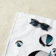 Esta divertida toalha de praia, tema de basquete, apresenta uma "explosão" de diferentes tetos, bolas de basquete preto e branco e formas de estrelas de cinza e talho em fundo branco - um padrão de pequenas cobrir brancas, a estrela do chá - personalizam-se com o monograma do atleta no maior basquete e nome em faixas de varSIDADE pretas e verticalmente orientadas - por katz_d_zynes