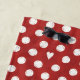 Um teste padrão vermelho e branco bonito do coração e de bolinhas. Artista: Veronique Charron