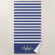 Personalize uma toalha de praia branca e azul marinho com um monograma. Clique no botão personalizado para alterar as iniciais e o nome.