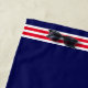 Farol náutico moderno em azul marinho com Toalha de praia de listras vermelhas e brancas.