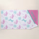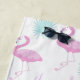 Plano de fundo branco com um padrão uniforme de flamingos cor-de-rosa e cactos de turquesa e seu monograma personalizado em letra escrita à mão.