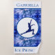 Figura Skating "Ice Princess" Personalizada Beach Towel. Esta design tem um fundo metálico - holograma com uma bela silhueta azul de skater de figuras cintilantes no centro. Acima disso você pode personalizar o nome do seu patinador artístico, embaixo diz Ice Princess.
