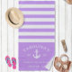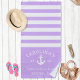 Adote as vibrações à beira-mar com a nossa toalha de praia personalizada Lavanda e Branco para o seu fim de semana de despedida de solteira náutica. Quer você esteja indo para a praia ou uma festa de barco, esta toalha é o item indispensável para absorver o sol. Personalizada com seu nome, tipo de evento, destino e ano.