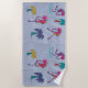 Relax and dry off with this playful towel featuring a flock of bright pink flamingos enjoying a sunny day at the beach. The design captures a fun, tropical atmosphere, perfect for any seaside adventure.