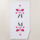 Flamingo rosa e toalhas de praia com padrão cardíaco