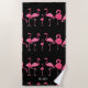 Flamingo flock Beach Towel Flamingo é um pássaro alto a andar, com, principalmente, plumagem rosa ou escarlate e pernas longas e pescoço. Tem uma conta muito torta que é mantida de cabeça para baixo na água para filtrar a alimentação de pequenos organismos.