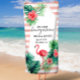 Toalha De Praia Flamingo Rosa Folhas Tropicais Listras Lua de Mel
