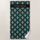 Toalha De Praia Fleur de Lis, Beige on Green, Royal, Your Name
