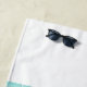 The subtle aqua border accents and sun-washed tones create a fresh, boutique beach aesthetic that stands out beautifully on the sand. Perfect for beach days, poolside lounging, lake trips, vacations, or summer getaways.