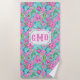 Toalha De Praia Flor de Hibiscus Tropical Preppy | Monograma