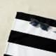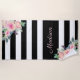 Linda cor-de-água rosa floral em uma toalha de praia listrada de rubi preto e branco. Personalizado com seu nome em uma fonte de script elegante.