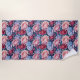 Esta toalha de praia apresenta rosas e peônias em azul-céu suave, cor-de-rosa-casca delicada, e vinho tinto-escuro, com folhagem lacrimejada e roxa no fundo. Bonita e luxuosa com um olhar antigo de país que ainda é muito moderno.