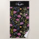 Relaxe e desfrute do estilo floral com esta elegante toalha de praia. A toalha de na moda é preta com um padrão bonito de flores silvestres. Quer você esteja se desenrolando na praia, na piscina ou no jardim, esta toalha faz um acessório chic para o verão. Personalize com seu nome e inicial, que formará um monograma no topo da design.