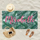 Toalha De Praia Folhas de Palmeira Aquarela Tropical Nome Rosa Per