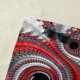 Este produto apresenta uma bela arte fractal espiral em vermelho, preto, cinza e branco.