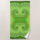 Esta toalha de praia apresenta um padrão fractal espiral simétrico em tons verdes.