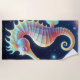 Este design apresenta um cavalo marinho amarelo, colocado sobre um fundo cósmico.