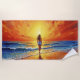 Toalha De Praia Garota da praia do pôr do sol caminha pelo oceano