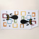 Ilustração colorida do estilo do Meio século abstrato com gato preto, estrelas pretas e ornamentação colorida em fundo branco. Você pode adicionar seu nome/monograma para personalizar o item.