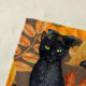 Padrão pintado à mão com gatos pretos, abóboras e folhas de outono. Mídia mista - pintura digital e aquarela.