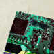 Criação de estilo robótico brilhante geek com conselho de circuito impresso verde, roxo, rosa, azul e amarelo. Geek e design de arco-íris de tendências. Nome e texto para personalizar em um processador.