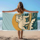 This sunny blue towel will turn heads and is perfect for your next beach day or pool party! The retro-inspired surf art features a too-cool bulldog who rides an endless wave in front of the golden sun. Designed with old-school California energy, the distressed look gives it an authentic feel, like it was pulled straight from a vintage surf shop.