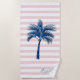 Toalha De Praia Glitter Azul Elegante Tiras Rosa Palm