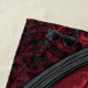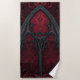 Gothic window design with red ornamental background and black frame structure. Dramatic artwork for fans of dark gothic style and cathedral aesthetics.