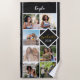Toalha personalizada de praia fotográfica para o seu formando! O modelo está preparado para você adicionar 7 de suas fotos favoritas celebrando seus anos de estudo. O modelo de foto exibe suas fotos em formato quadrado / instagram em uma colagem de fotos de estilo simples em grade. O formando é escrito à mão em ouro e você também pode adicionar o nome do Formando e o ano da classe. A redação é escrita à mão e a tipografia moderna. Design moderno e chic em preto e ouro.