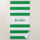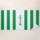 Salta na praia, na piscina ou no barco em estilo com esta toalha de praia verde-chic e listrada branca apresentando o seu nome em texto moderno sobre uma faixa branca de sotaque mais espessa. Divirta-se mudando o texto de cor e as cores de distribuição para melhor corresponder ao seu estilo.