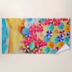Ondas em uma praia arenosa, banhistas e muitos guarda-chuvas coloridos, esta toalha de praia é uma adição divertida à sua casa de praia, bolsa de praia, férias de verão ou dar como presente. CORRESPONDENDO a itens na nossa loja.
