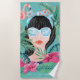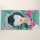 Beleza retrorreflectora, pintada à mão, vibrante e na moda, folhas tropicais de palma, flores de hibisco rosa e flamingo. "Hello Girl" foi criada com uma letra de na moda e incorporada lindamente aos óculos de sol na moda. Todas as ilustrações contidas nesta toalha tropical da praia de beleza praia são obras de arte originais desenhadas à mão pela Moodthology.